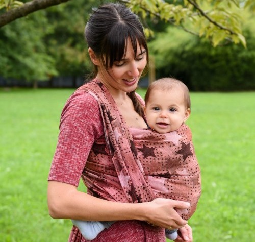 - Variedad de posiciones: Con un fular de tejido puedes llevar a tu bebé en posición frontal, a la cadera o incluso a la espalda, adaptándote a las necesidades del momento.