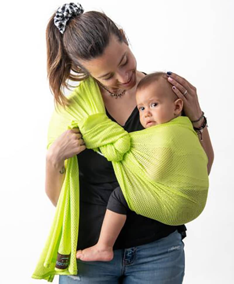 La Bandolera Portabebés Macropus se fabrica en tejido técnico de rejilla transpirable.