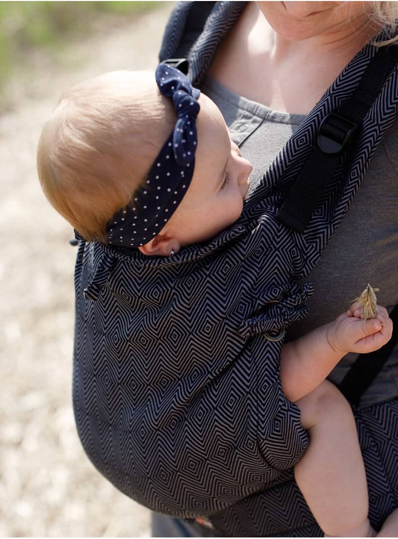 Si no os encontráis cómodos con los tirantes, se pueden cruzar la mochila Kinder Hop dando así más opciones de uso para el porteador.